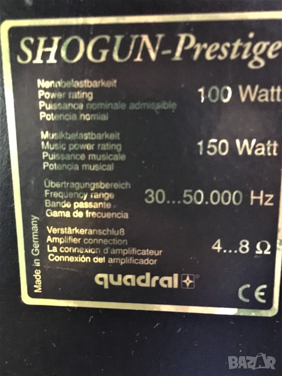 Музикално натоварване (номинален/музикален диапазон): 100/150 W,