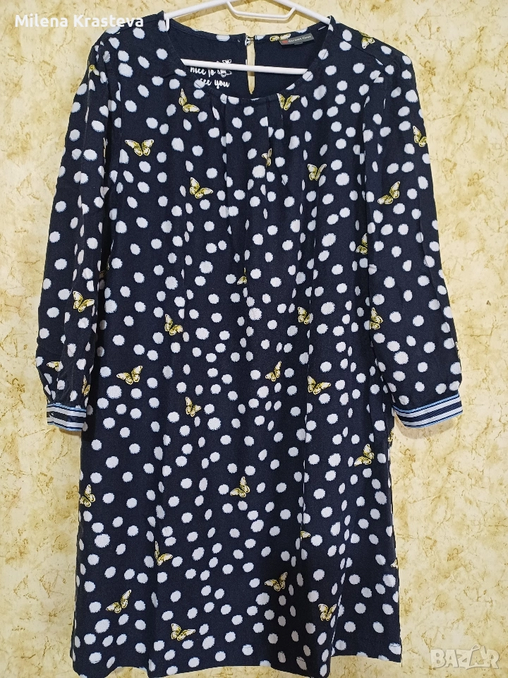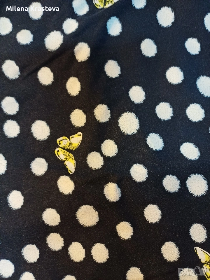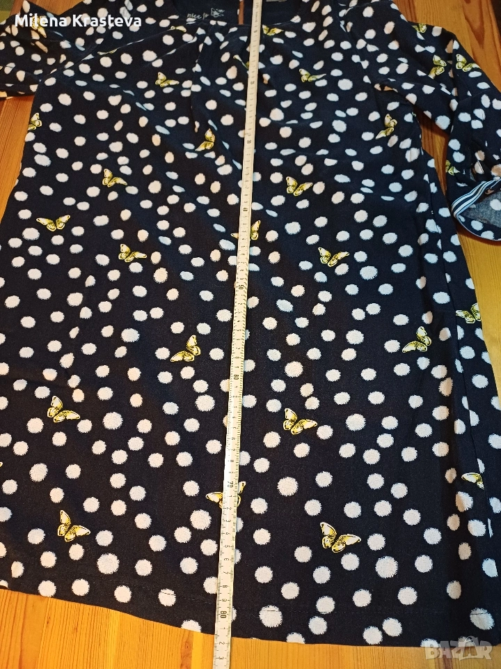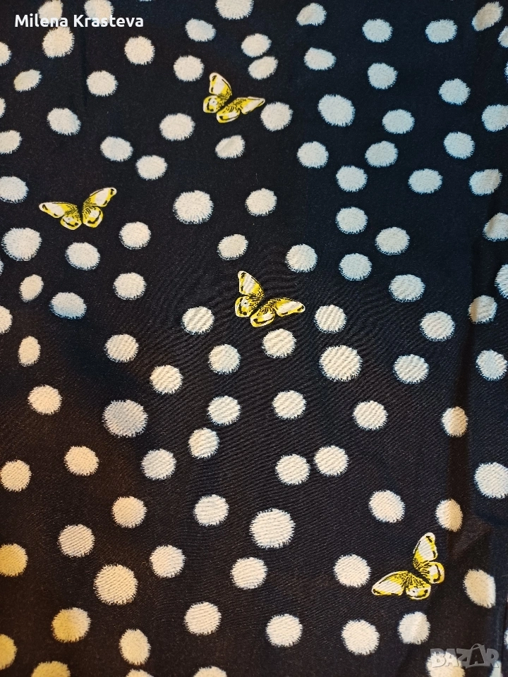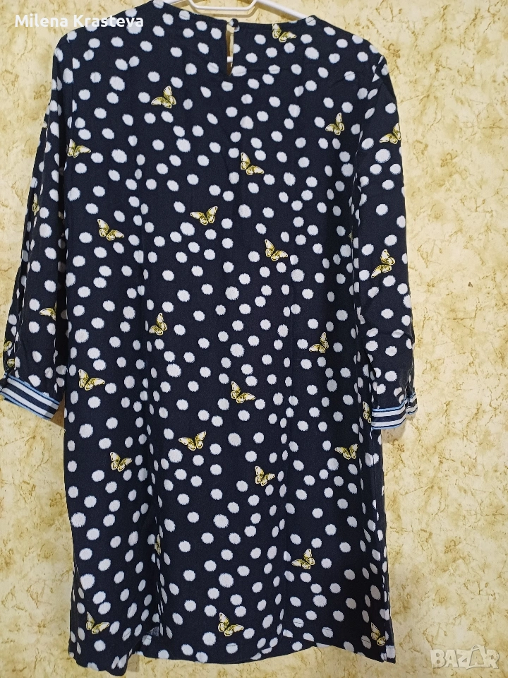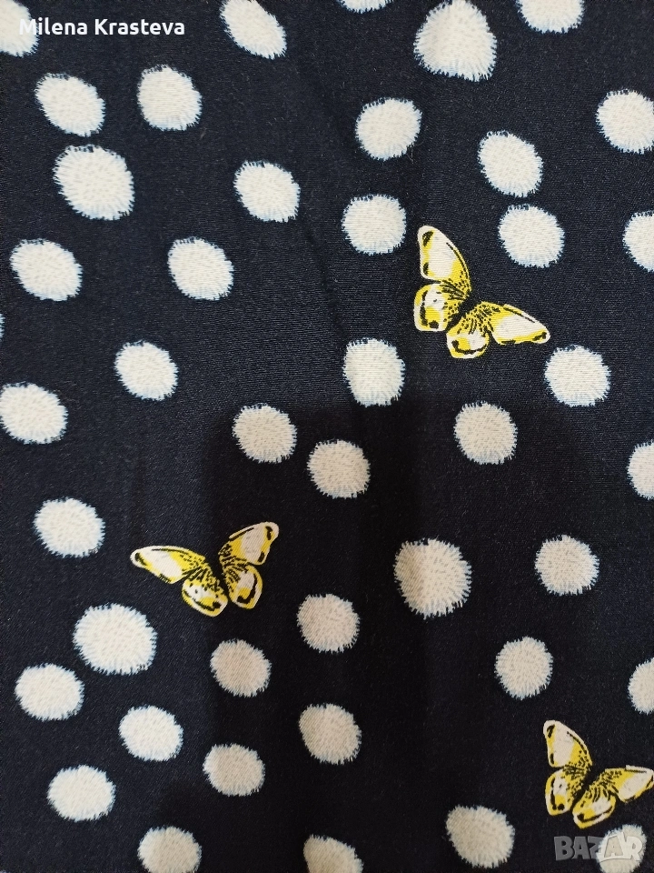 Роклята има уникален закачлив принт, пеперуди и цвят на летящо глухарче, който и придава закачлив вид.