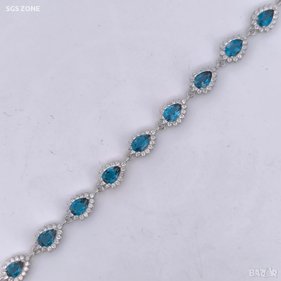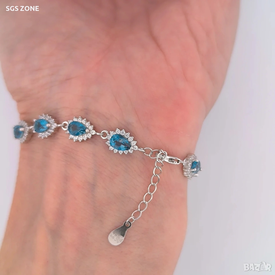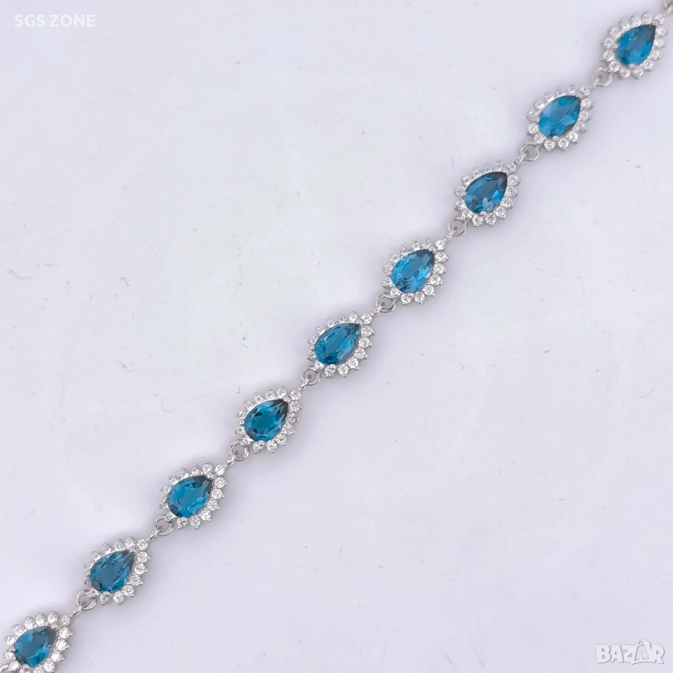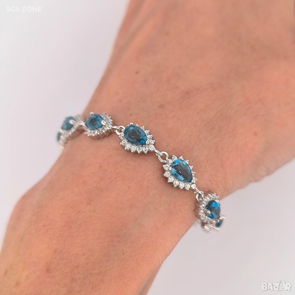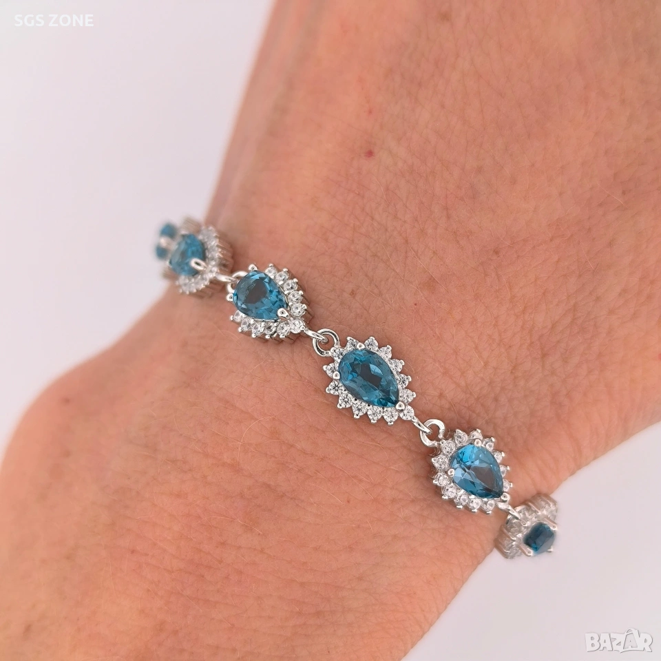 Сребърна гривна с необичаен лондонски топаз от Тайланд. 16+3 см. Още снимки и видеа на продукта в Instagram и Facebook sgs.zone, уебсайт sgs.zone. Можем да изпратим допълнителна информация чрез Viber. Изпращане Speedy и Эконт. Шоурум в София, Дондуков, 53. Всички продукти са със сертификати и подаръчна кутия. Продукти имат допълнителни български маркировки