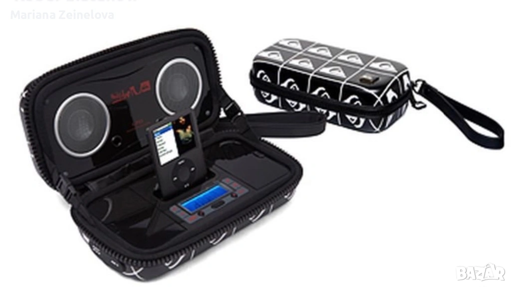 Тези преносими високоговорители съчетават технологията на iPod със стил Quiksilver. Специално проектираният твърд калъф защитава високоговорителите и вас iPod по време на пътуване и служи като шкаф за високоговорители, произвеждайки по-добър звук. Включва дори часовник, който ви събужда под звука на вашия iPod.подходяща за вашият офис или магазин. работи на батерии и с 9волтов адаптер.разледайте и другите ми обяви.