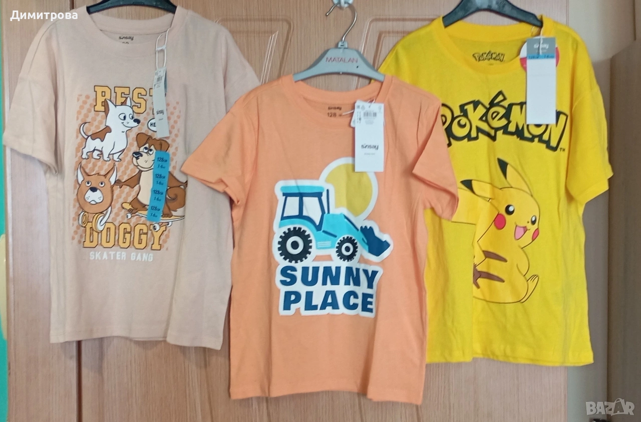 здравейте продавам чисто нови тениски 4бр размер 128см, чисто нови с етикет подходящи за подарък продават се заедно обща цена за всички 8€, изпращам до офис на Спиди или Еконт за Варна може и лично