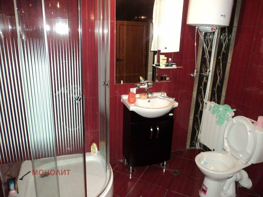 Имотът представлява дворно място заедно с построените в него триетажна масивна жилищна сграда, масивен гараж и дворно място с площ 600 кв.м. Всеки етаж е самостоятелен. Първи етаж се състои от избено помещение, две стаи, сервизно помещение. Втори етаж е с разпределение - дневна, две стаи, сервизно помещение. Трети етаж се състои се от голяма дневна с кухня, три спални, санитарен възел, складово и котелно помещение. Има изградена инсталация за локално отопление с чугунен котел. Много добро състояние, нови мебели и климатици/ в гаранция/. Има одобрен проект за надстрояване на четвърти етаж и обособяване като къща за гости.