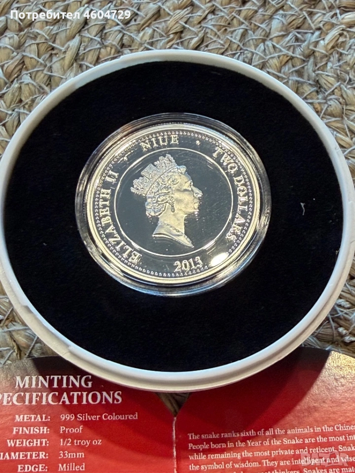 Половин унция сребро година на змията, снимка 1 - Нумизматика и бонистика - 53450430 Половин унция сребро година на змията, снимка 2 - Нумизматика и бонистика - 53450430 1/2