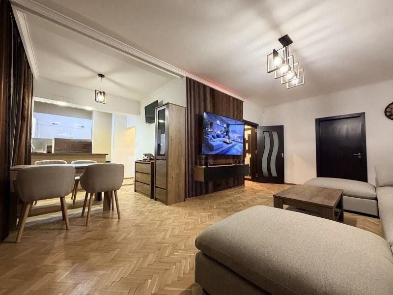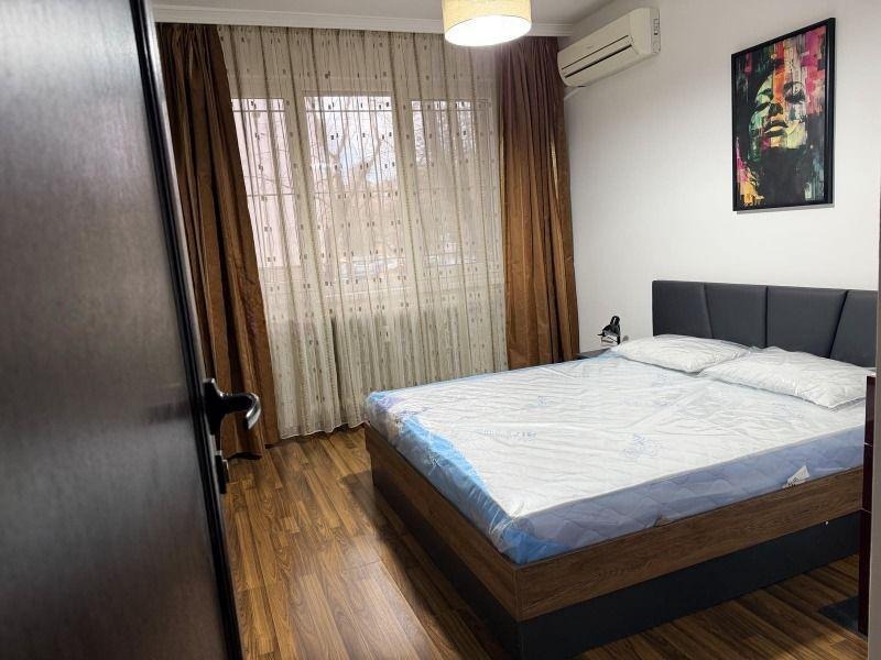 Разпределението включва входно антре, просторен хол с кухненски бокс, баня с тоалетна, две спални и тераса. Апартаментът разполага с централно отопление на ТЕЦ и климатик. Месечният наем е 960 EUR.