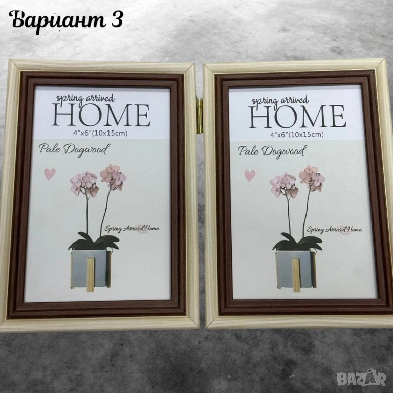 Двойна дървена рамка за снимки тип книга за снимка размер 10х15см → Обява 53450741