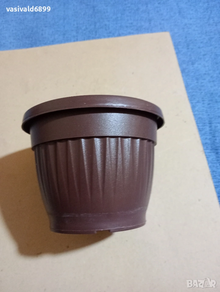 Кафява пластмасова саксия без подложка. Цена: 0,20 EUR.