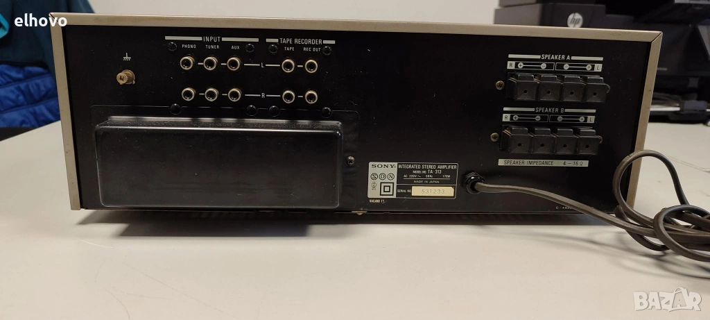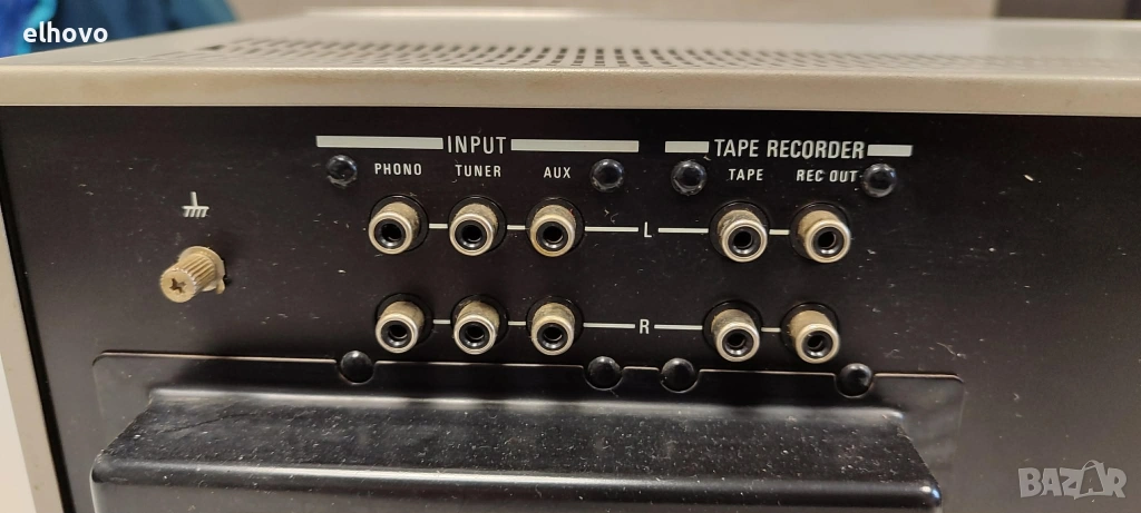 Входове: Усилвателят разполага с входове за Phono (MM), Tuner, AUX, Tape, както и вход за микрофон (Mic).