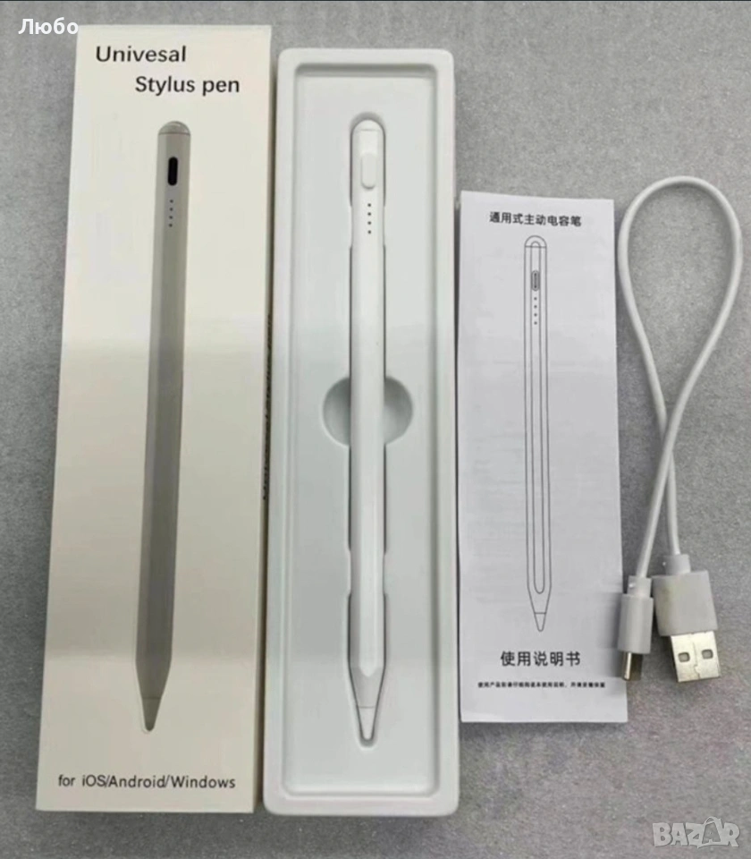Стилус Touch Pen, професионален, съвместим с Apple iPad и Samsung Galaxy Tab, сензорен контрол, без забавяне, USB-C, против надраскване, бял, ISAG® Фабрично запечатани. Характеристики 1. Продуктът е подходящ за повечето сензорни устройства на пазара, било то таблет или телефон. Върхът на химикала е изработен от специални материали, с които може да се пише безпроблемно на всеки сензорен екран, има висока чувствителност и устойчивост на износване 2. Корпусът на писалката приема структура от метален материал, който отразява напълно текстурата, авангарден стил, практичен и много удобен в ръката. 3. Този продукт има силна съвместимост, супер функции, тънък дизайн, лек и прост, супер прецизен опит при писане 4. Върхът на химикалката е много устойчив на износване и може да се сменя много лесно. Писането на екрана е много лесно и прецизно. Дисплей на батерията: 4 светодиода на 75%-100% 3 светодиода на 50%-75% 2 светодиода на 25%-50% 1 светодиод на 25% 1 мигащ светодиод 5% За да включите писалката и да можете да я използвате на желаното устройство, е необходимо да щракнете двукратно върху сензорния превключвател на главата на устройството, светлинният индикатор светва в синьо и от този момент писалката може да се използва. За да го изключите, щракнете двукратно върху сензорния превключвател в горната част на устройството.