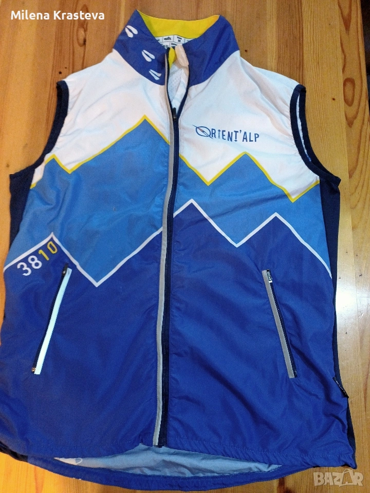 Спортно елече, протектор в горната част на ципа. Два джоба. Дишащ гръб.Еластечна материя под мишците за удобство при движение. Обкантени ръкави за да не влиза вятър. Ластични гарнитури със стопер в долната част за плътно закопчаване.