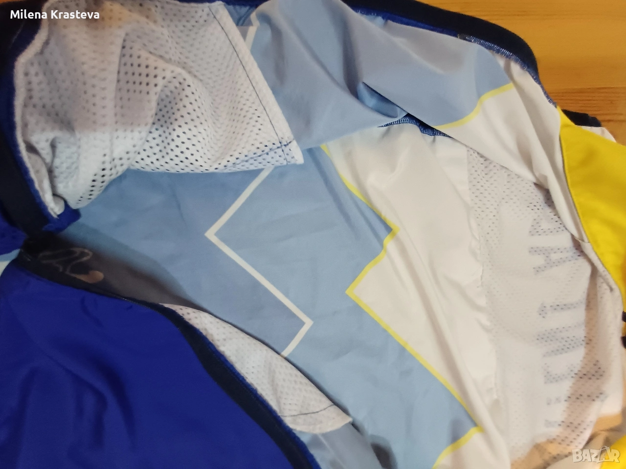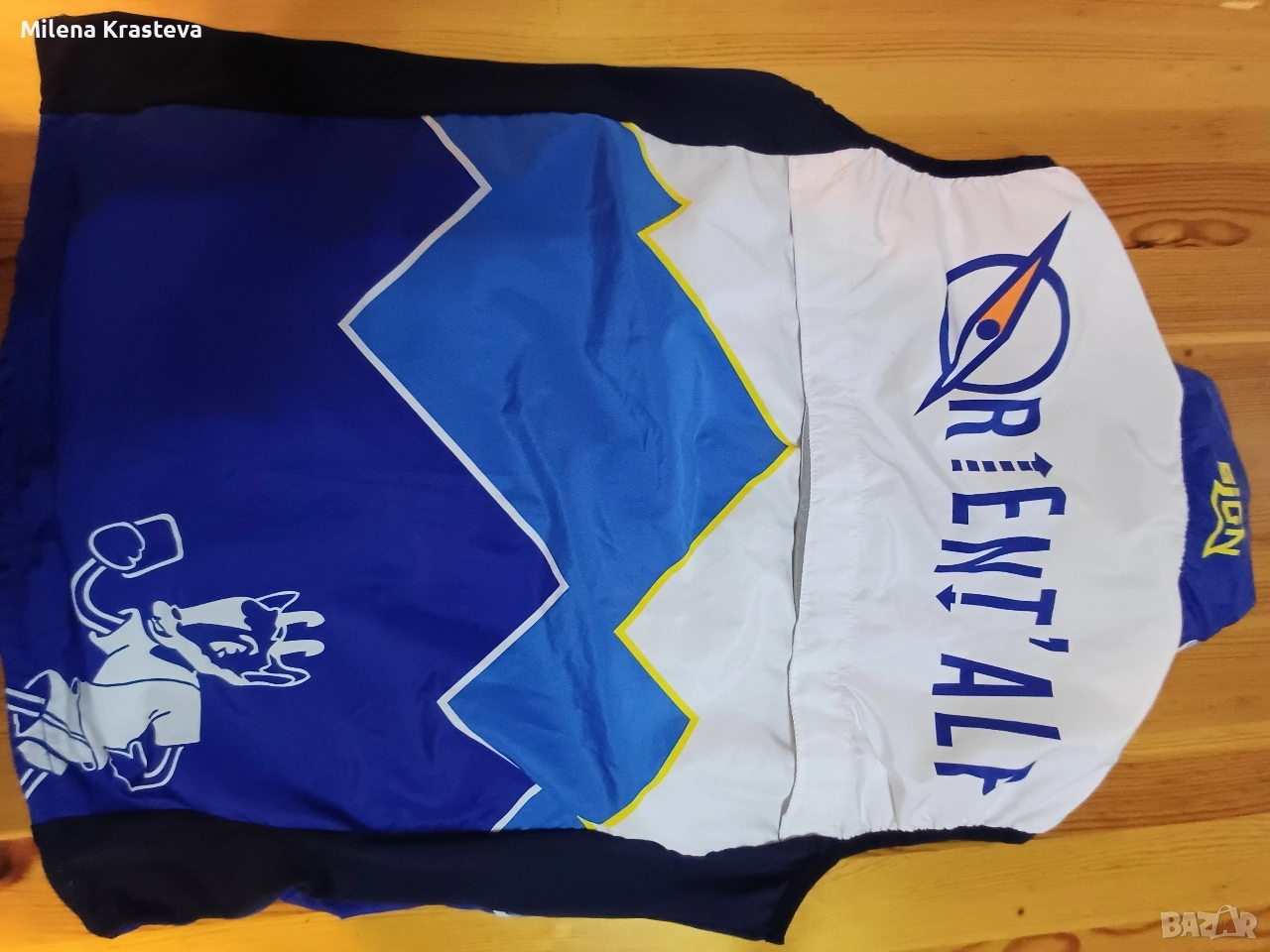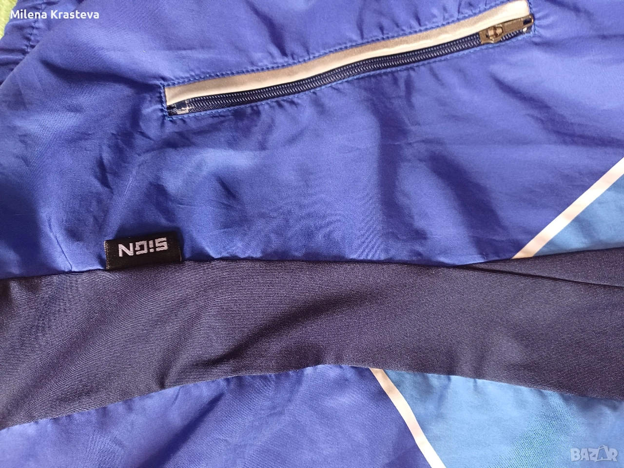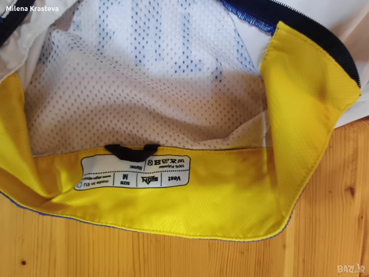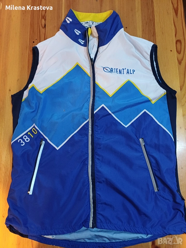 Спортно елече, протектор в горната част на ципа. Два джоба. Дишащ гръб.Еластечна материя под мишците за удобство при движение. Обкантени ръкави за да не влиза вятър. Ластични гарнитури със стопер в долната част за плътно закопчаване.