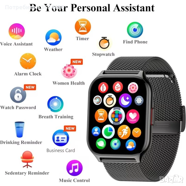1 брой метална каишка (черна).