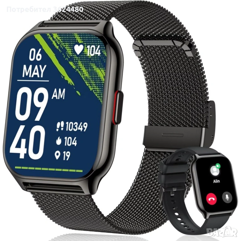 Гъвкавост и стил: Метална верижка за изискани събития и силиконова каишка за активен спорт. Елегантен черен корпус с модерна правоъгълна форма.