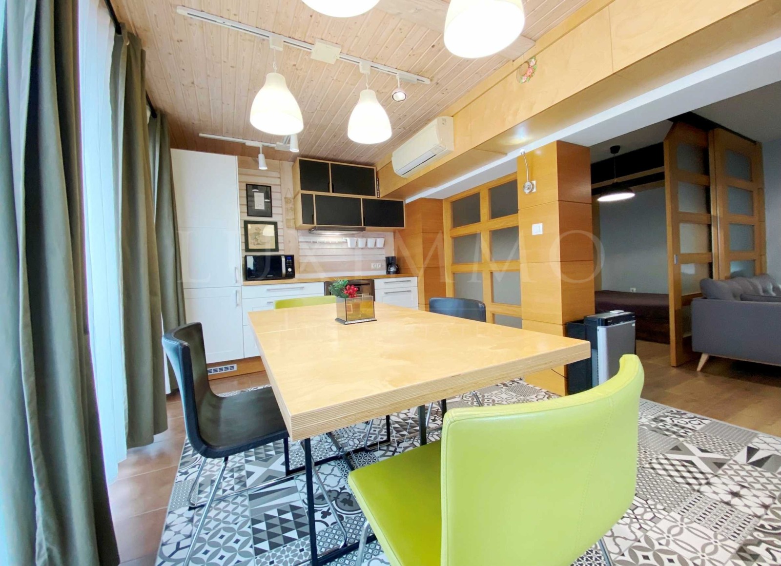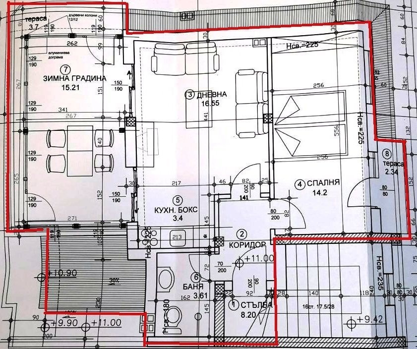 всекидневна с кухненски бокс и трапезария;