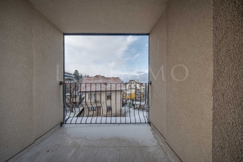 Апартаментът е функционално разпределен и предлага комфорт и удобство. Състои се от просторна дневна с трапезария и кухненски бокс, две самостоятелни спални, една бани с тоалетни, отделно тоалетна и тераса, от която се разкрива впечатляваща панорамна гледка към планината и града. Големите прозорци осигуряват изобилие от естествена светлина през целия ден и създават усещане за простор и уют.