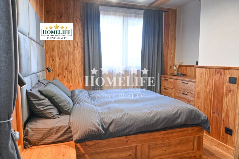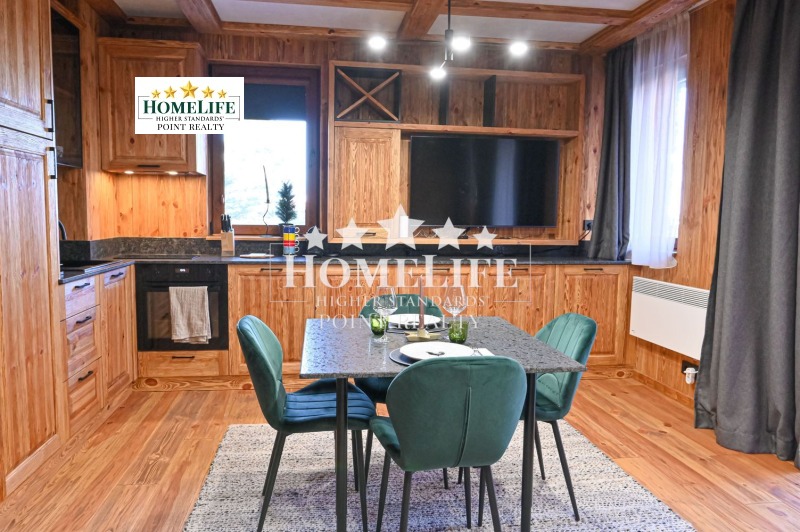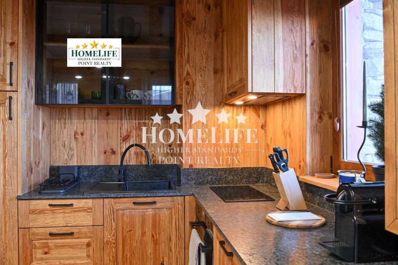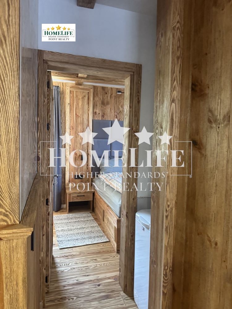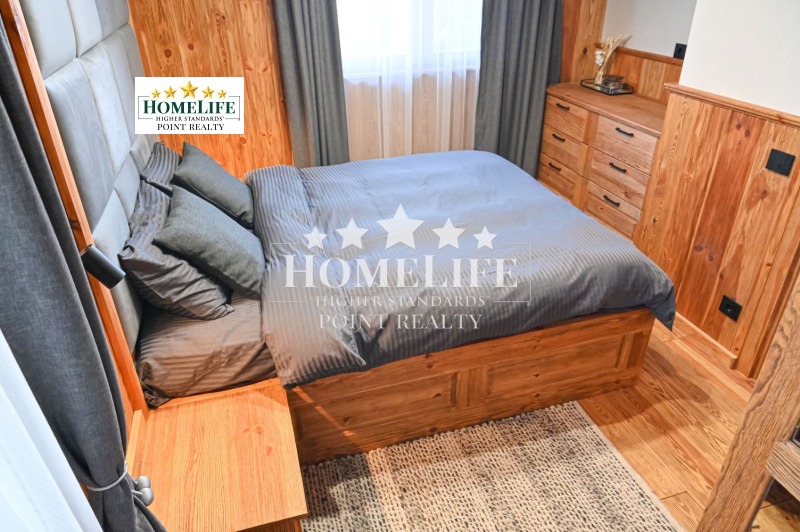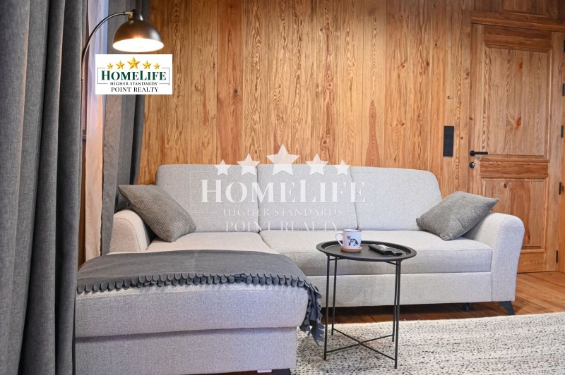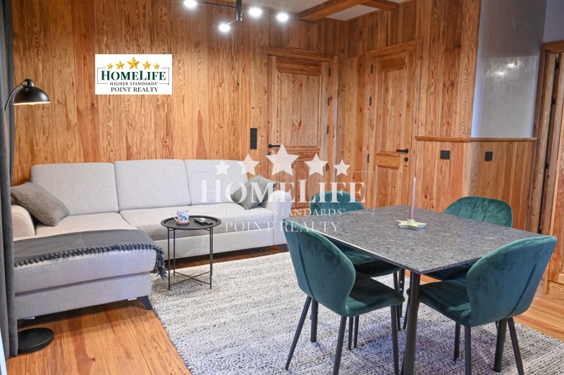 HomeLife Point offers to you a unique one-bedroom apartment in the 'Sveti Ivan Ski' gated complex in Bansko for sale. The property has a unique charming spirit of a forest lodge, designed and built entirely from natural materials - wood and stone, equipped with top-of-the-line kitchen appliances - 'Miele', electric heating with convector radiators, washing machine, and ski boots dryer. Free parking is available within the complex.