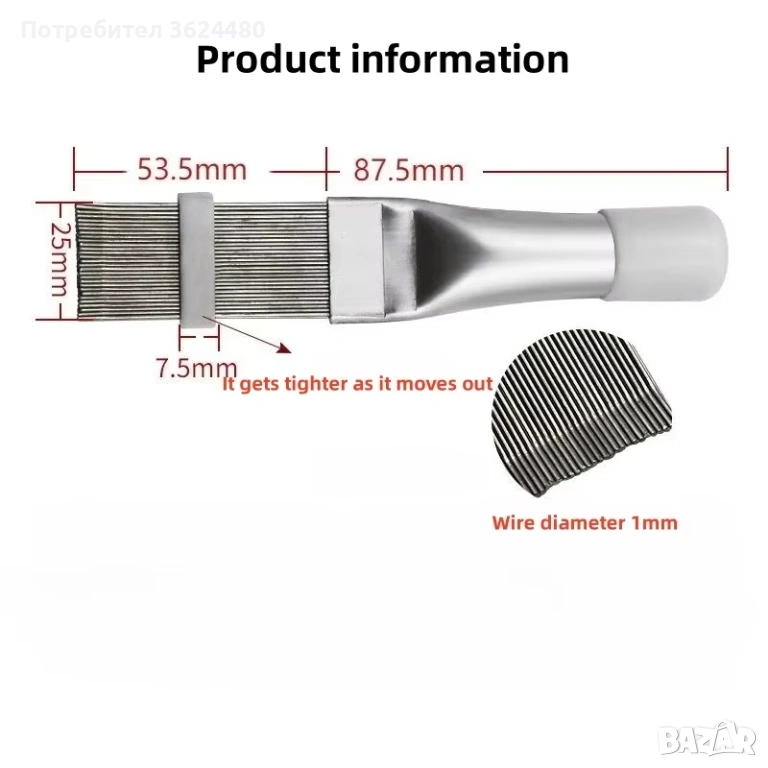 1 брой метален гребен за почистване и изправяне на ребра на климатик.