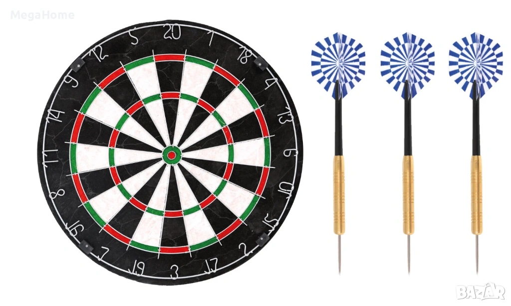 Класическата визия с прецизно очертани сектори и контрастни цветове прави мишената лесна за четене дори от разстояние. Черно-бялата основа е допълнена от стилни червени и зелени зони, които придават завършен професионален вид. Дартсбордът е изчистен от всякакви лога и брандиране, което го прави подходящ за всяко помещение – от домашния хол до офиса или залата за игри.