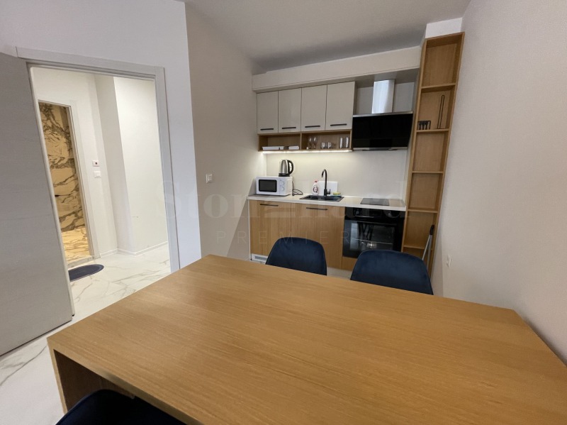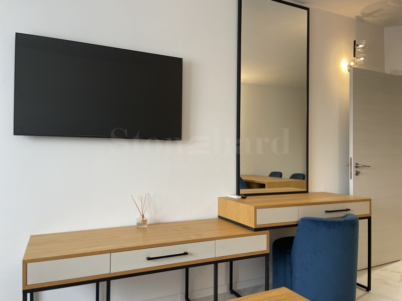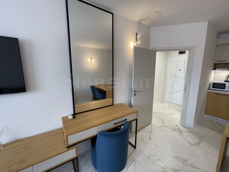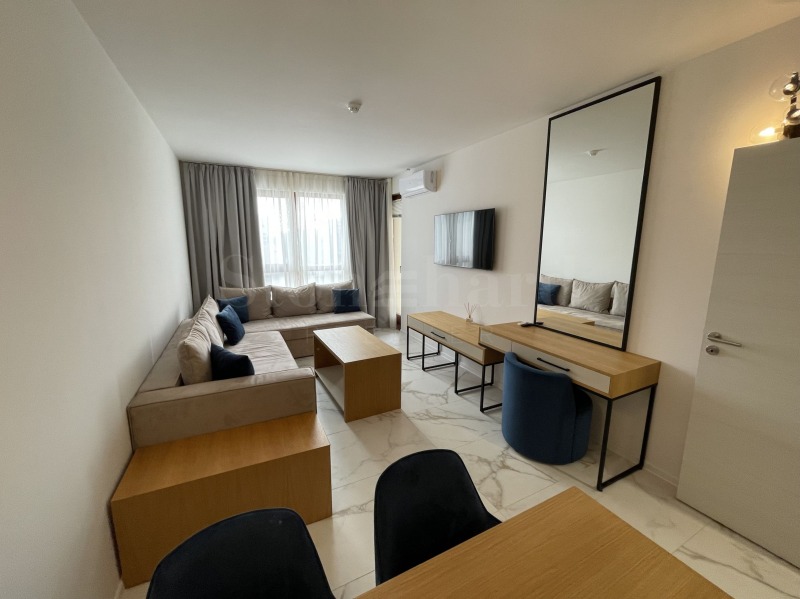 Апартаментът е напълно оборудван и обзаведен с всичко необходимо за живеене като мебели и ел. уреди. Отоплението и охлаждането са решени с климатици. Подходящ е за инвестиция и отдаване под наем на хотелски принцип.