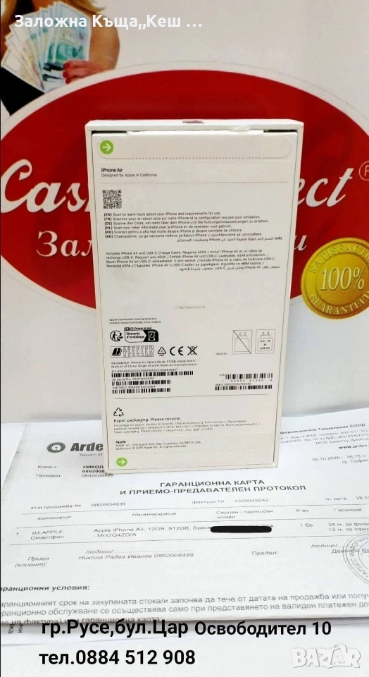 iPhone Air 512 GB. НОВ. 24 м. Гаранция.Цена 990 €.
