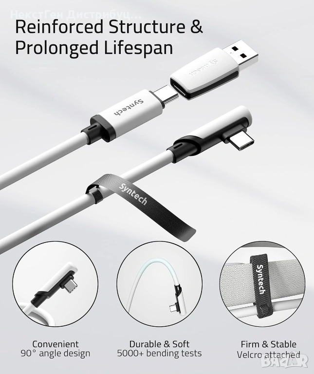 Syntech 2 in 1 Link Cable позволява едновременно пренос на данни и зареждане, което осигурява по-дълги гейминг сесии без прекъсване.