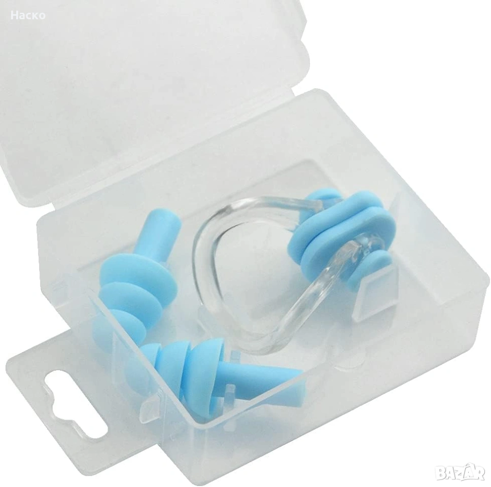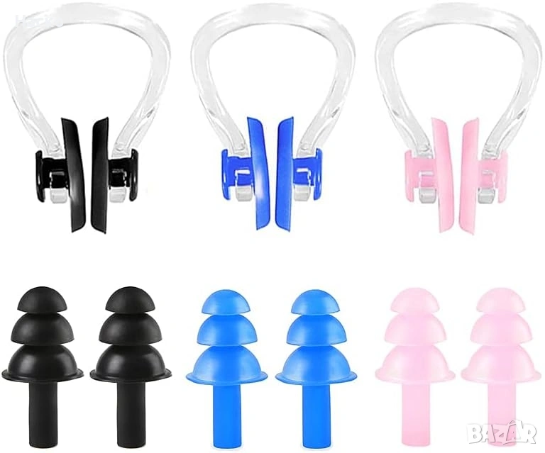 Комплект от 2 броя силиконови тапи за уши и щипка за нос,