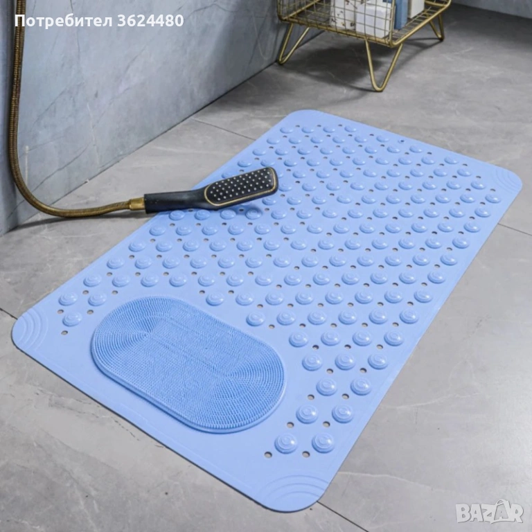 Осигурете сигурност в мокрите зони с нашата гумена противохлъзгаща се подложка за баня с масажор за крака. Изработена от висококачествено PVC, тази подложка прилепва плътно към пода благодарение на здравите си вендузи. Тъмно сивият цвят придава модерен вид, а размерите от 36 х 69 см я правят идеална за всяка душ кабина или вана.