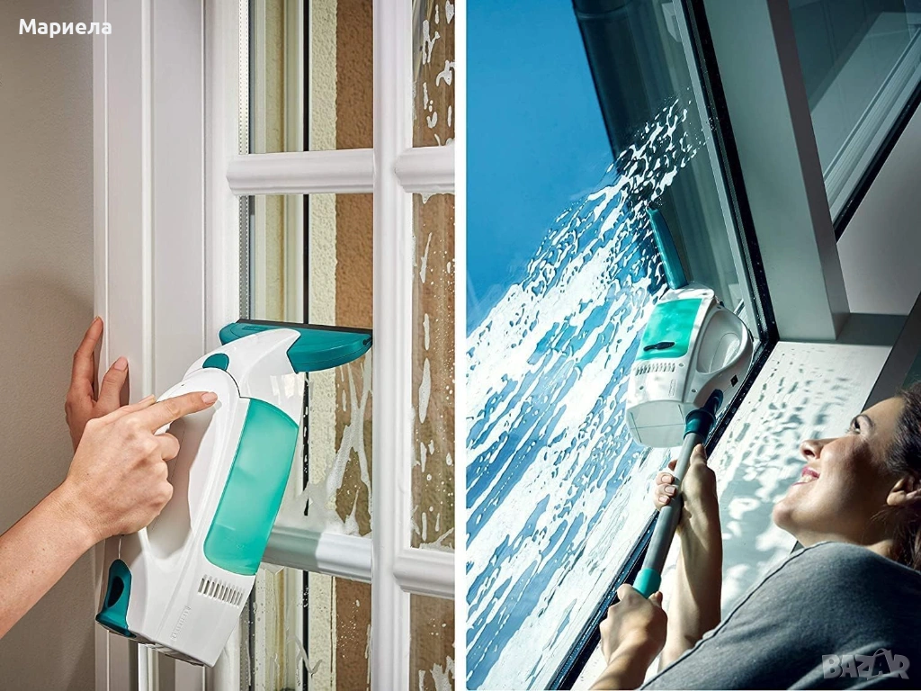 Тази безжична стъклочистачка за прозорци е лесна за употреба - просто измийте прозорци, плочки, огледала или душ кабини и след това почистете с гумата , за да не останат капки.