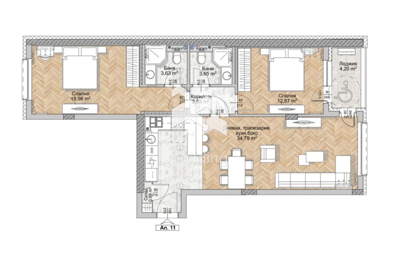- Хол с кухненски бокс;