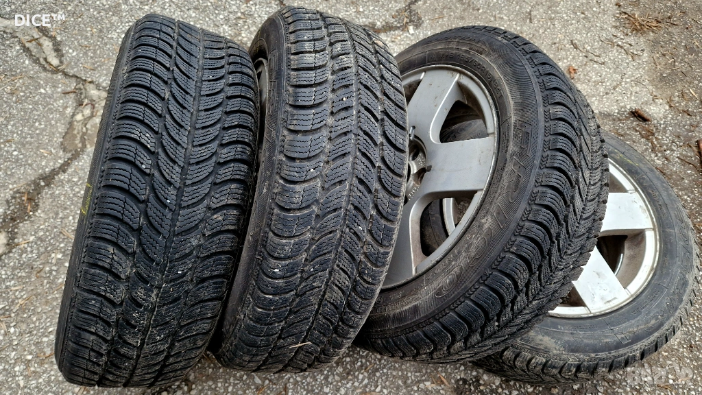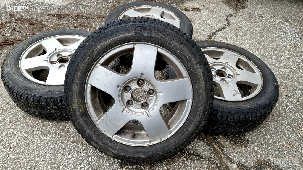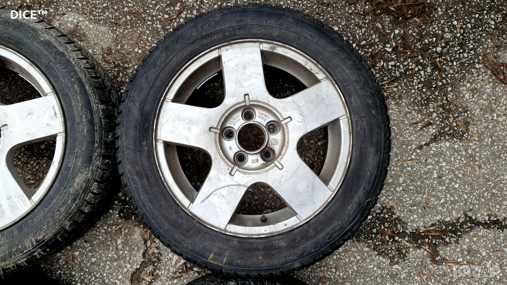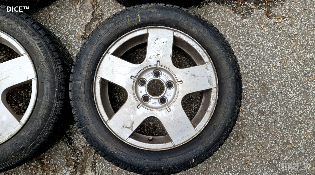 Продавам 4бр лети джанти 15" 5х100 6J ET38 оригинални Фолксваген, комплект със зимни гуми 185/60/15 Debica Frigo, DOT 3723 на 7мм грайфер.