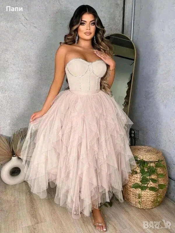 Дамска рокля с тюл и перли, снимка 1 - Рокли - 53452218 Дамска рокля с тюл и перли, снимка 2 - Рокли - 53452218 1/2