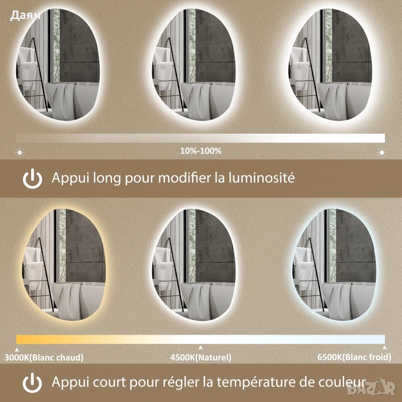 - Огледало за баня с функция памет, без нужда от преконфигуриране