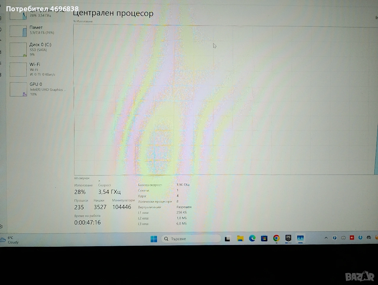 Процесор: Intel Core i5-8350U (4 ядра / 8 нишки)