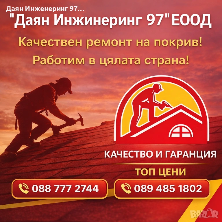 ΠΠ·Π²ΡΡΡΠ²Π°ΠΌΠ΅ ΠΏΡΠΎΡΠ΅ΡΠΈΠΎΠ½Π°Π»Π΅Π½ ΡΠ΅ΠΌΠΎΠ½Ρ Π½Π° ΠΏΠΎΠΊΡΠΈΠ²ΠΈ Π² ΡΡΠ»Π°ΡΠ° ΡΡΡΠ°Π½Π°. ΠΡΠ΅Π΄Π»Π°Π³Π°ΠΌΠ΅ ΡΡΠ»ΠΎΡΡΠ½ΠΈ ΠΈ ΡΠ°ΡΡΠΈΡΠ½ΠΈ ΠΏΠΎΠΊΡΠΈΠ²Π½ΠΈ ΡΠ΅ΠΌΠΎΠ½ΡΠΈ Π½Π° ΠΊΡΡΠΈ, Π²ΠΈΠ»ΠΈ, ΠΊΠΎΠΎΠΏΠ΅ΡΠ°ΡΠΈΠΈ ΠΈ ΠΏΡΠΎΠΌΠΈΡΠ»Π΅Π½ΠΈ ΡΠ³ΡΠ°Π΄ΠΈ.