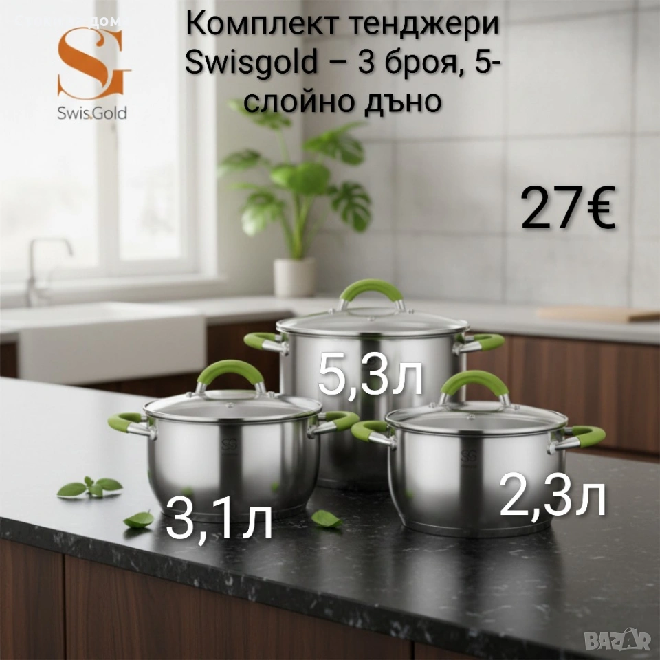 Комплект тенджери Swisgold – 3 броя, 5-слойно капсулно дъно