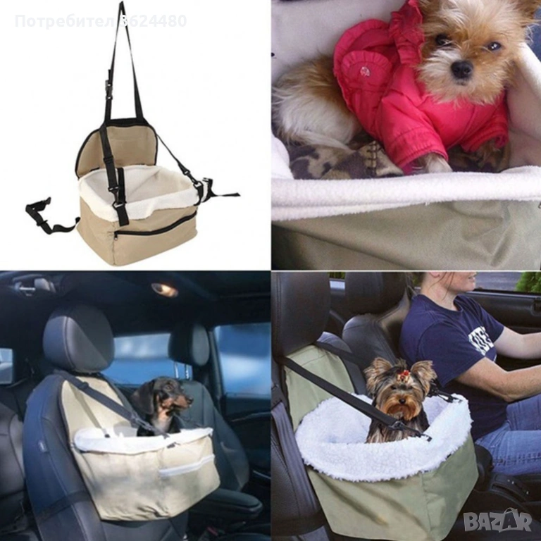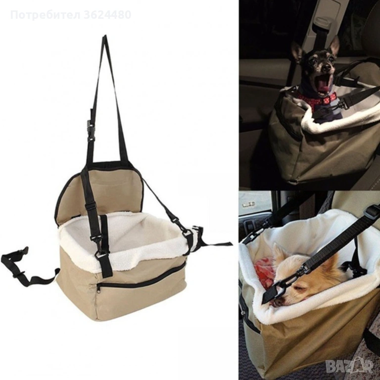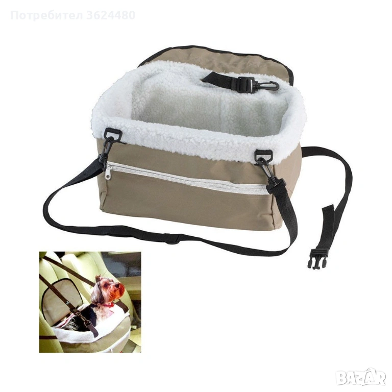 Този модел е с квадратна форма и е произведен от устойчив материал с мека подплата по стените. Осигурява уединение и чуство за сигурност и комфорт на животинчето. Разполага със специални колани за закрепване към автомобилната седалка и халка за закопчаване на каишката на кучето. Така то няма да напусне чантата по време на път.
