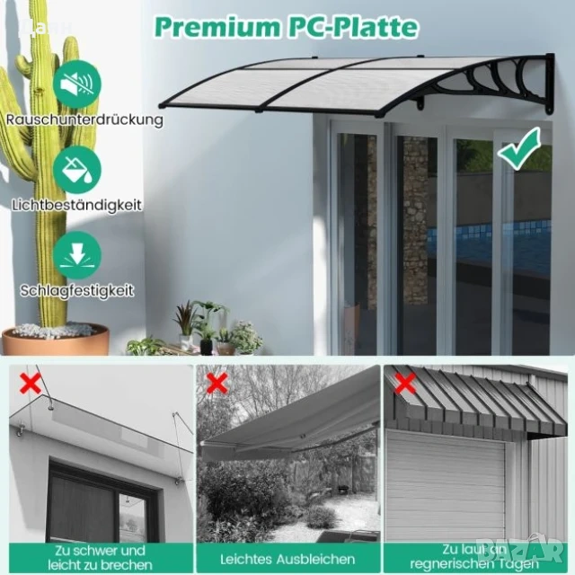 Сенник от поликарбонат 100х200 COSTWAY, козирка → Обява 53452773