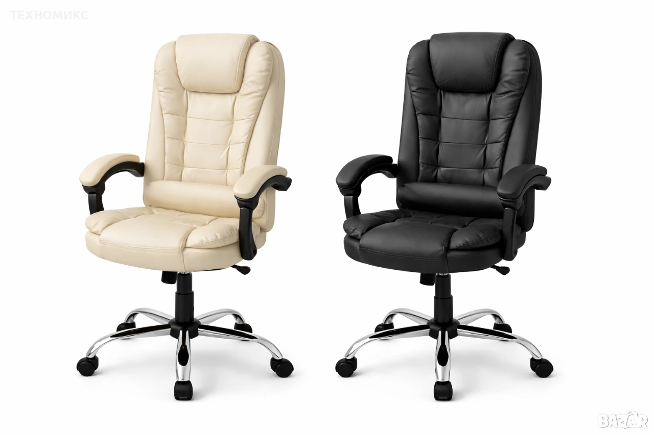 Ергономичен офис стол с лумбална опора от еко кожа – комфорт за дълги часове без болки