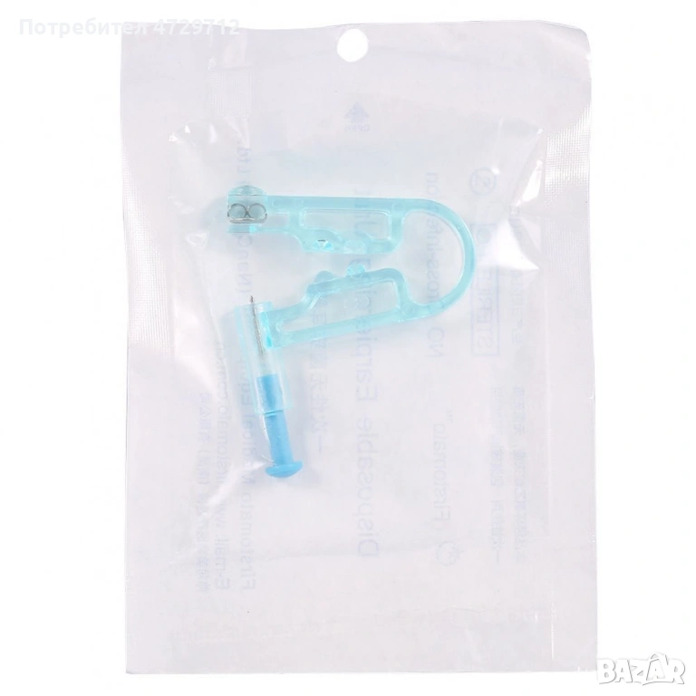 Стерилна опаковка с анти алергична обица от медицинска стомана за поставяне на уши.