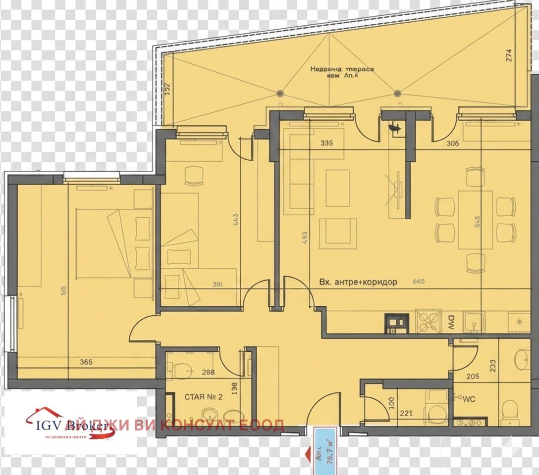 наземна тераса с излаз от дневната с площ от 24 кв.м.