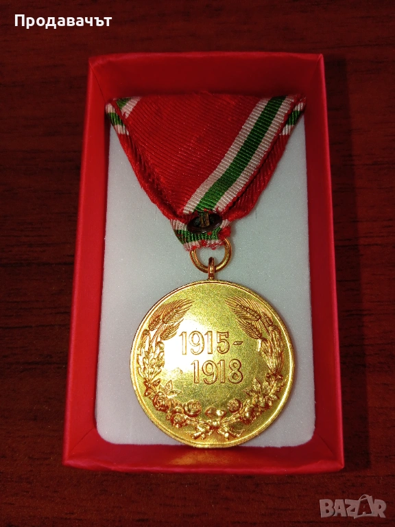 Медал за участие в Първата световна война, учреден през декември 1933 г. с указ на цар Борис III. Медалът е бил връчван на генерали, офицери, фелдфебели и други военни, както и на цивилни, които са подпомагали българската армия по време на войната. За България са били предопределени 50 000 бройки, а за чужденци (основно германци, унгарци и австрийци) 199 000 бройки. Има три вида ленти.