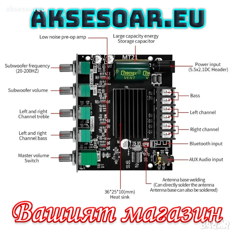 модела: Сглобена Платка - стерео усилвател и субуфер subwoofer
