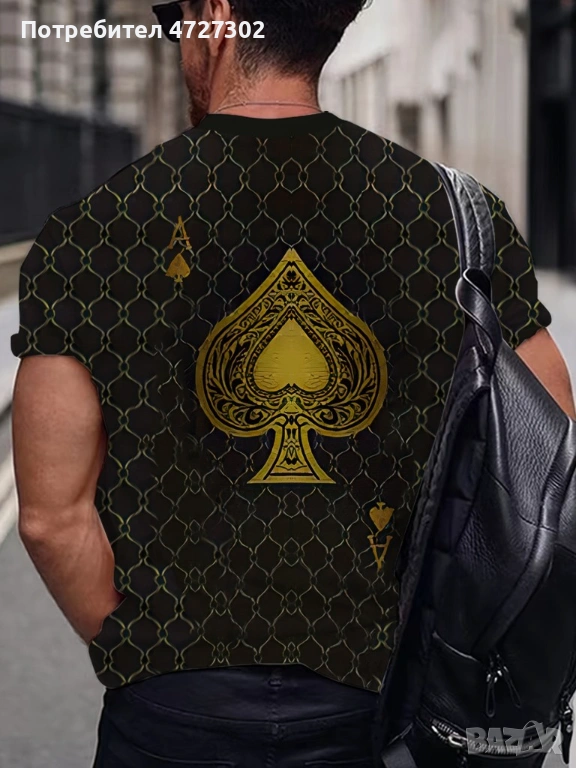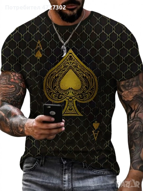 Мъжка тениска с графичен принт с акцент Асо пика → Обява 53453695