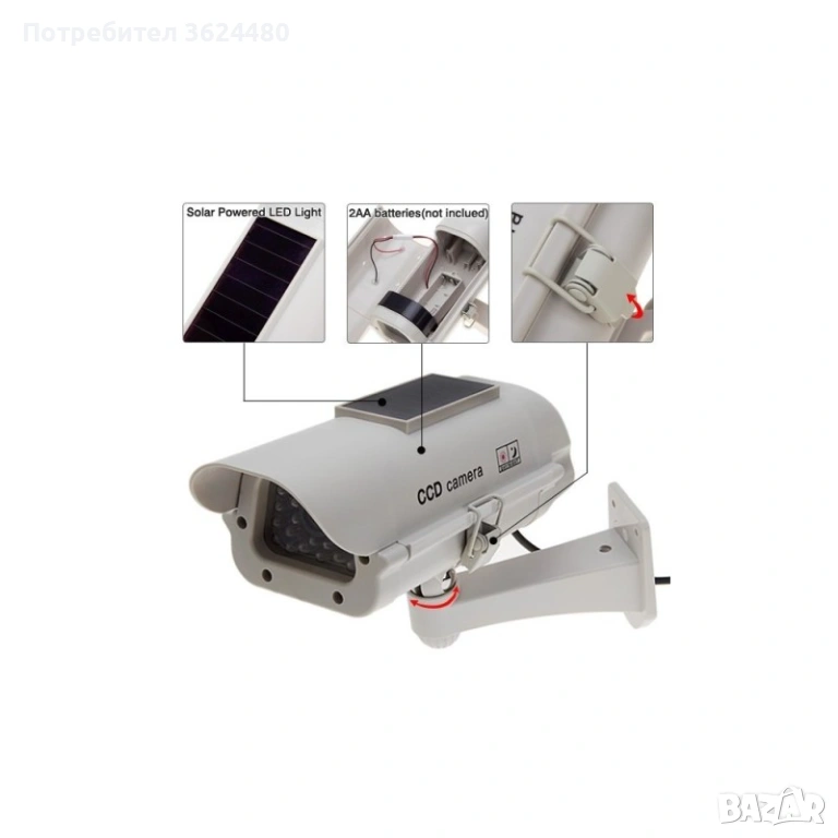 Фалшива камера със соларен панел и вградена IR подсветка от 28 LED диода