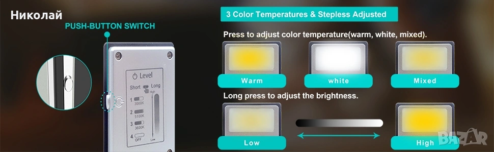 Нова лед лампа със щипка. Свети със неутрална, топла и студена светлина.