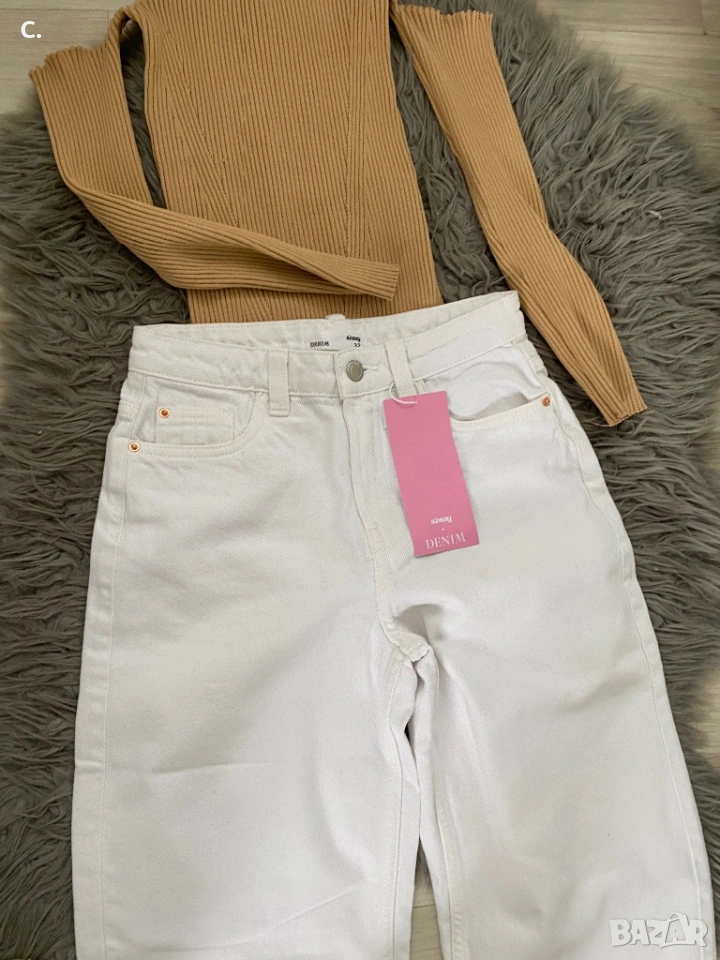 Дънките са чисто нови, блузата е носена, но в добро състояние