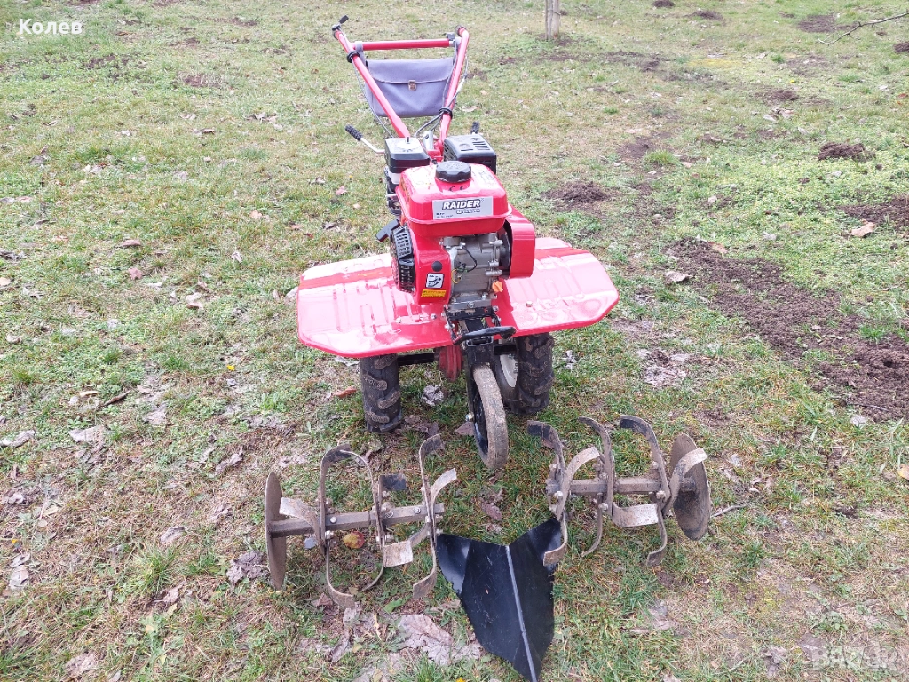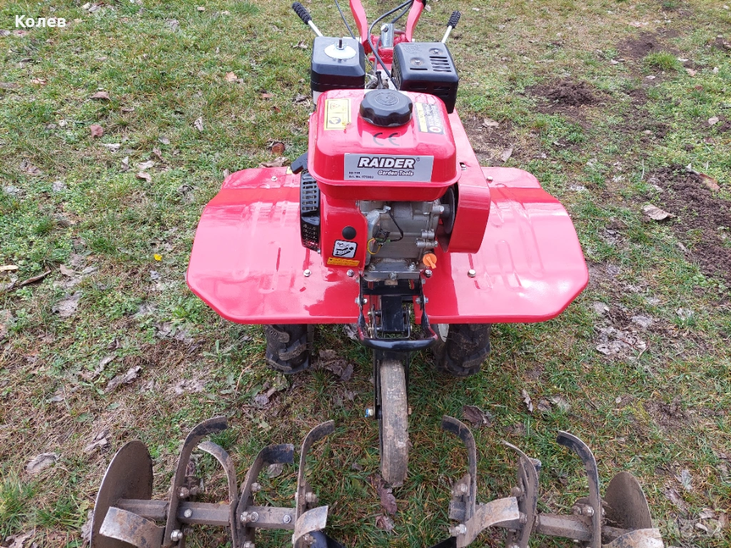 Почти нова мотофреза Райдер ползвана броени пъти(в гаранция до 18.03.2026 г.).Допълнителен инвентар,колелета,браздир,картофовадач и др.