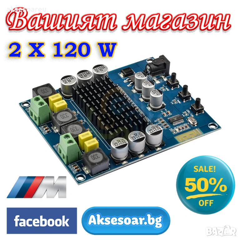 Ние също така предлагаме и други усилватели Клас Д (2 по 45 вата, 1 по 60 вата, 2 по 100 вата с Bluetooth, 2 по 100 вата с USB порт и AUX букса, 2 по 50 вата + буфер 100 вата, 2 по 160 вата + буфер 220 вата, 2 по 120 вата и 1 по 500 вата