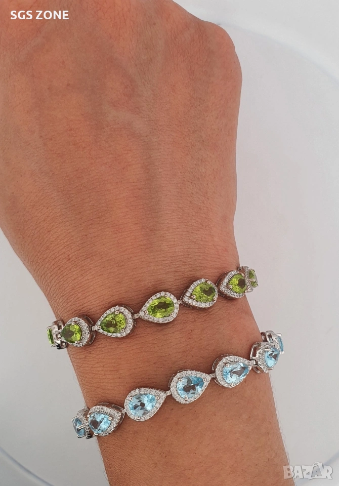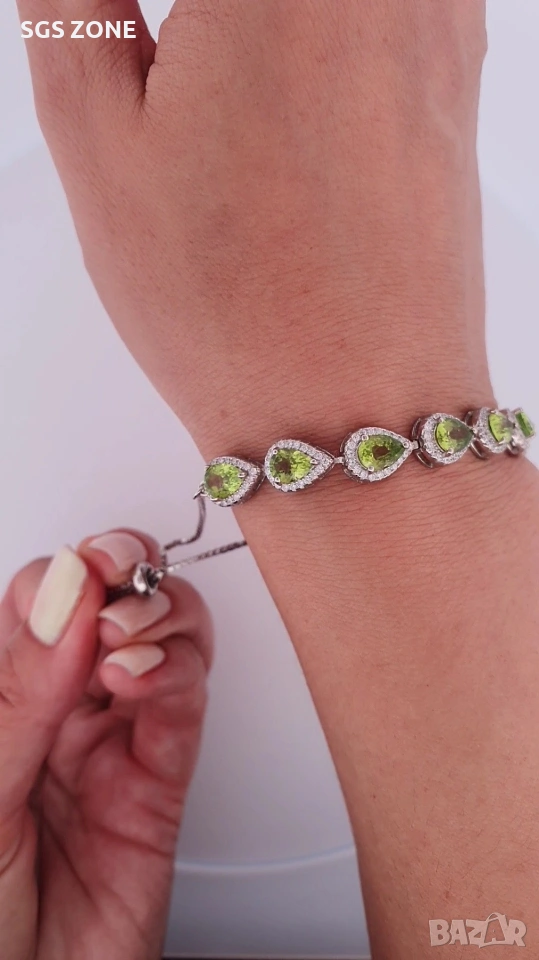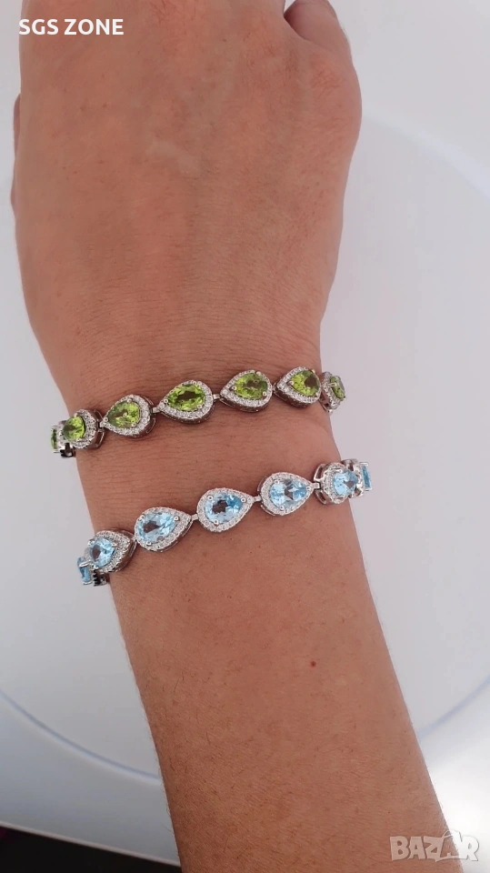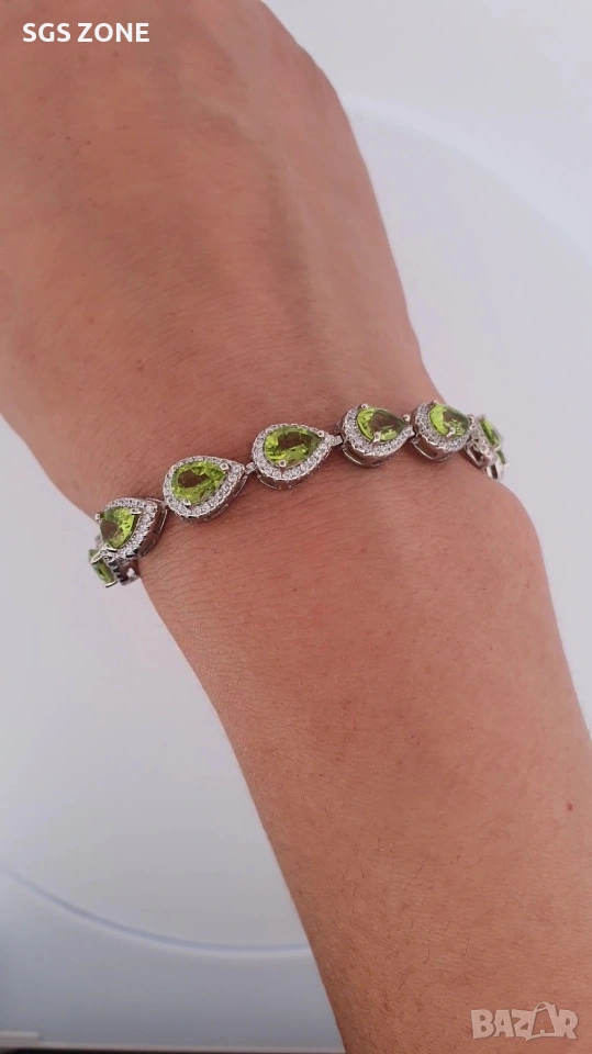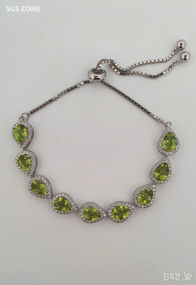 Сребърна гривна с естествен топаз или перидот от Тайланд. Още снимки и видеа на продукта в Instagram и Facebook sgs.zone, уебсайт sgs.zone. Можем да изпратим допълнителна информация чрез Viber. Изпращане Speedy и Эконт. Шоурум в София, Дондуков, 53. Всички продукти са със сертификати и подаръчна кутия. Продукти имат допълнителни български маркировки