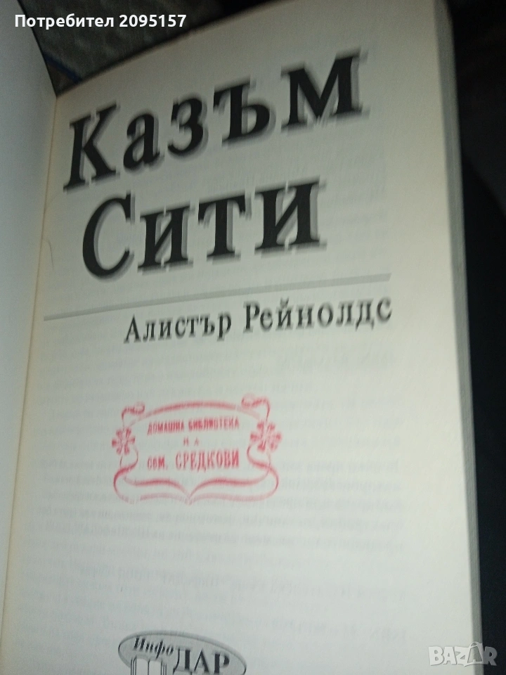 Казъм Сити Алистър Рейнолдс ИнфоДар 2004 740стр. Има нагънато по предната корица и печат от лична библиотека