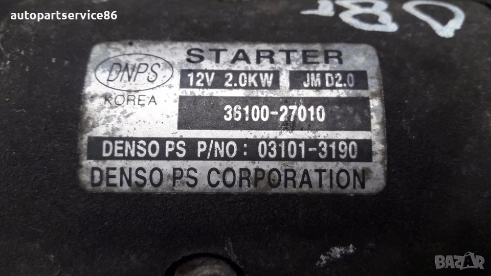 Стартер мотор за KIA Carens (2008) 36100-27010, 03101-3190, снимка 1 - Части - 53454886 Стартер мотор за KIA Carens (2008) 36100-27010, 03101-3190, снимка 2 - Части - 53454886 Стартер мотор за KIA Carens (2008) 36100-27010, 03101-3190, снимка 3 - Части - 53454886 1/3